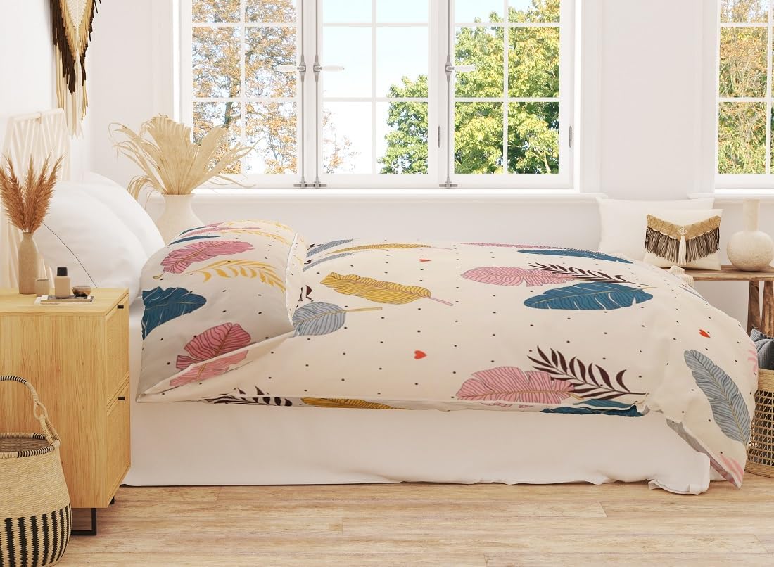Transform your bedroom into a charming retreat with this delightful comforter set featuring a lovely mint green and white polka dot pattern adorned with beautiful pink roses. The set combines classic floral elegance with contemporary polka dot design, creating a perfect balance of vintage charm and modern style. The crisp white background with mint green dots provides a fresh, airy feel, while the scattered pink rose prints add a romantic touch. This comprehensive bedding ensemble includes everything you need to create a coordinated look, with matching pillowcases and decorative cushion covers that echo the main design. The high-quality fabric ensures comfort and durability, making it perfect for year-round use. The versatile colour scheme effortlessly complements various room décors, from shabby chic to modern minimalist. The reversible design offers flexibility in styling, allowing you to switch between patterns for a fresh look. Perfect for master bedrooms or guest rooms, this set brings together comfort and style in one beautiful package.