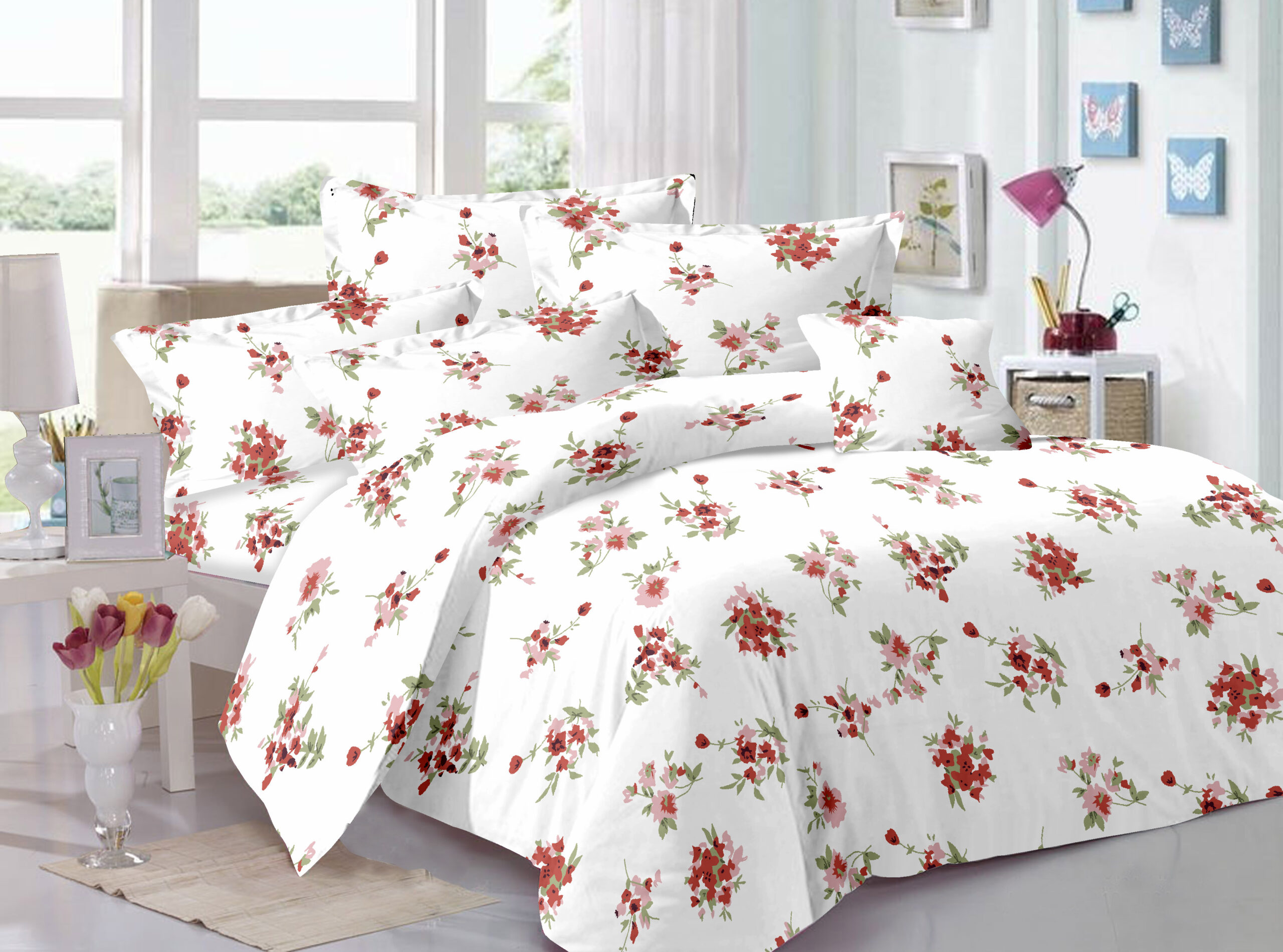 Transform your bedroom into a garden of tranquillity with this exquisite Pearl Collection double bedsheet. The pristine white base serves as a perfect canvas for the delicate pink floral prints that dance across the fabric, creating an atmosphere of timeless elegance. This flat sheet features a sophisticated pattern of scattered blossoms and gentle green foliage, bringing a touch of nature’s beauty indoors. The bedsheet’s design harmoniously balances contemporary style with classic floral motifs, making it versatile enough to complement various bedroom décor styles. Perfect for year-round use, the sheet adds a fresh, romantic ambiance to your sleeping space. The thoughtfully designed print pattern ensures the bedsheet remains a stunning centrepiece of your bedroom ensemble, while the white background maintains a clean, bright appearance. Ideal for those who appreciate subtle yet striking bedroom aesthetics, this bedsheet combines visual appeal with practical functionality. The floral design extends across the entire surface, creating a cohesive and immersive pattern that transforms your bed into an elegant focal point.