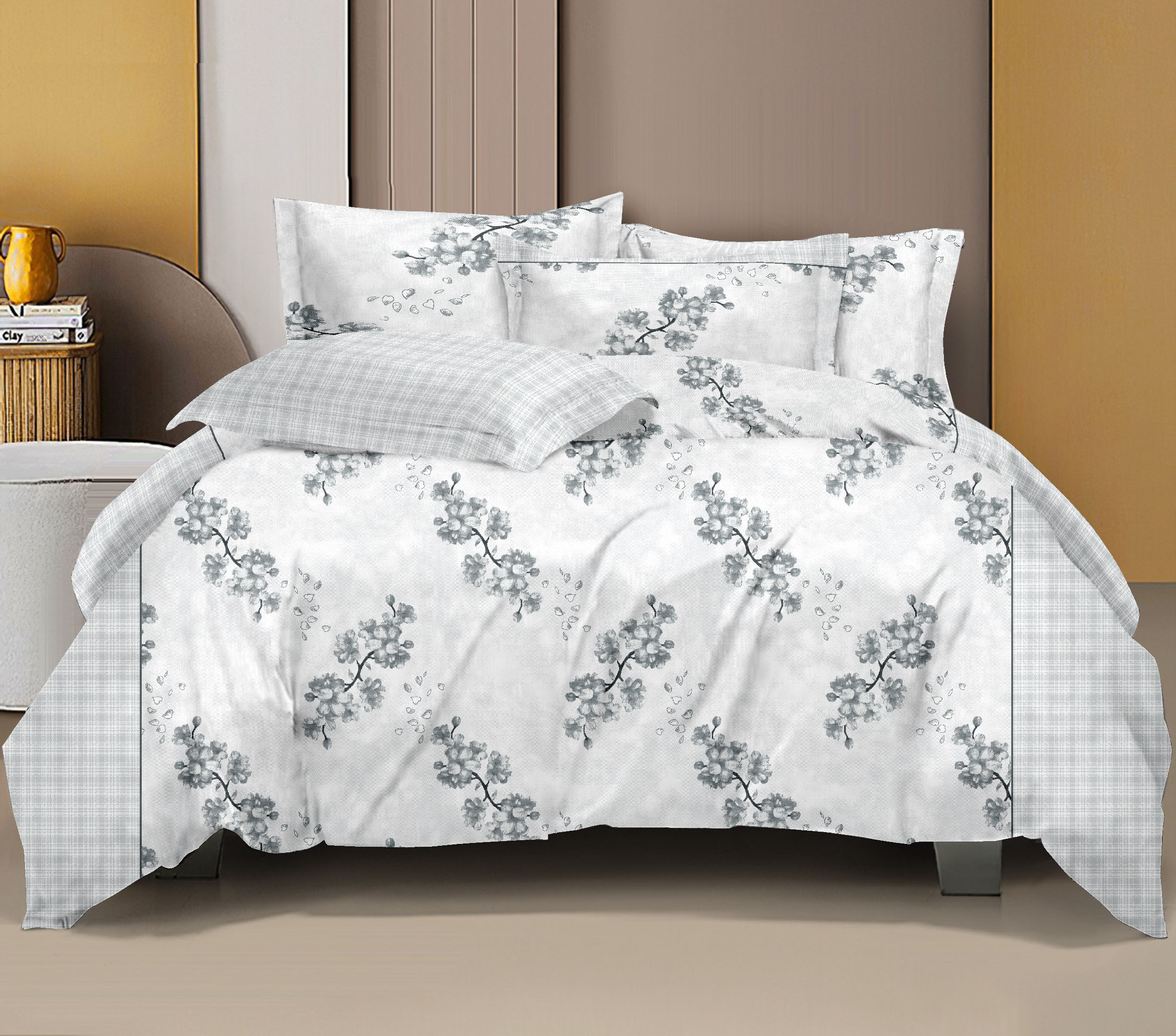 Transform your bedroom into a serene sanctuary with this exquisite XXL King Size bedsheet featuring delicate cherry blossom patterns. The pristine white background serves as a perfect canvas for the graceful floral motifs, available in sophisticated shades of brown, pink, or purple. The coordinating plaid pattern on the complementary pieces adds a subtle touch of sophistication. This bedding set includes a generously sized flat sheet and matching pillowcases, all crafted to provide both style and comfort. The detailed floral print creates a peaceful, spring-like atmosphere in your bedroom throughout the year. Perfect for master bedrooms or guest rooms, this bedsheet set combines aesthetic appeal with practical functionality. The spacious XXL King size ensures ample coverage for larger beds, while the classic design seamlessly integrates with various room décors. The bedsheet’s versatile colour palette makes it easy to coordinate with existing room furnishings, whether modern or traditional in style.