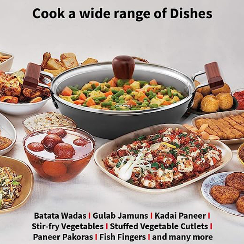 A versatile pan for stir-frying, steaming, deep-frying and re-heating