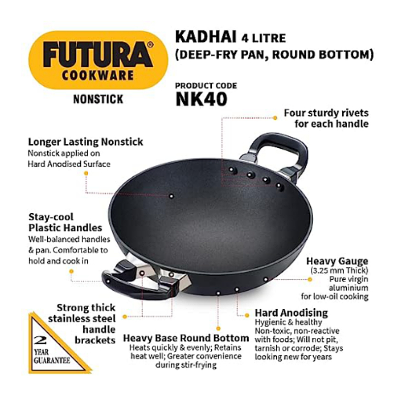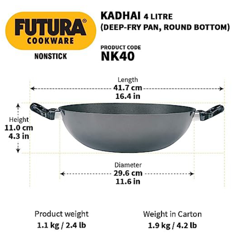 Hawkins Futura Deep-Fry Pan / Kadhai 4 Litre, Nonstick