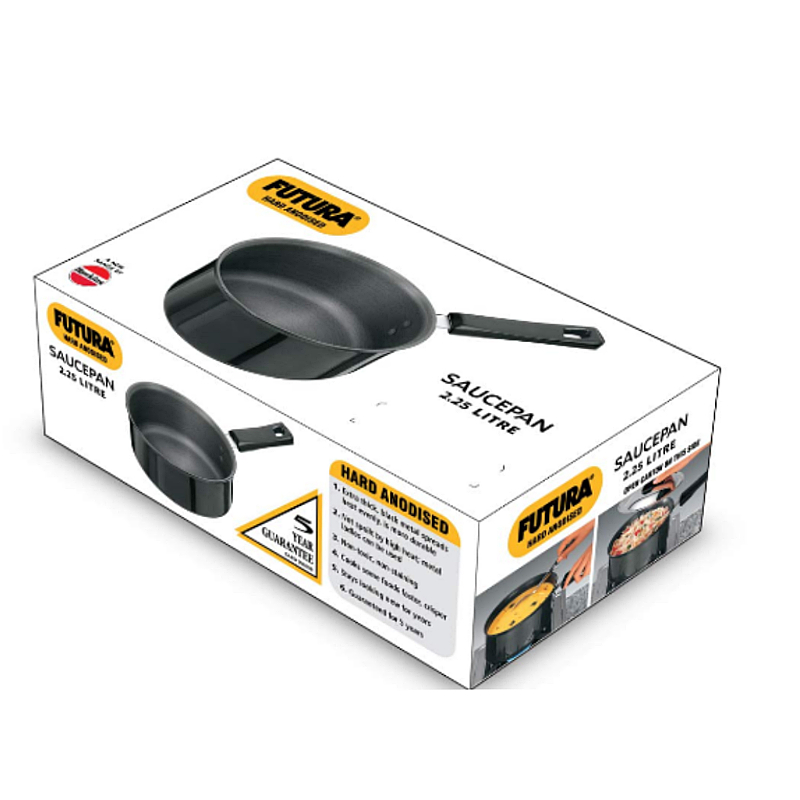 Hard Anodised Aluminium tough and durable, will not pit, tarnish or corrode and will stay looking new for years. It has flared rims for easy pouring. It has a strong, stay cool plastic handle fixed on sturdy stainless steel bracket which is permanently riveted to the Pan. It is made of hard anodised aluminium, it is built heavily to last longer. Suitable for use on domestic gas, electric, ceramic and halogen stoves. Perfect for making tea, coffee, soups, sauces, chutneys, gravies, curries, Rice, Pilau, Dal; Boiling noodles, pasta, eggs; Cooking food for infants; Reheating food and for tadka. The Hard Anodised Saucepan has flared rims, specially designed for easy pouring, and which is particularly preferred for making soups, tea or other beverages, or boiling milk. The Saucepans have strong, stay cool plastic handles fixed on sturdy stainless steel brackets which are permanently riveted to the pans. The Hard Anodised finish on these pots will stay looking new for years. These pots are suitable for domestic gas, electric, ceramic and halogen cooktops.