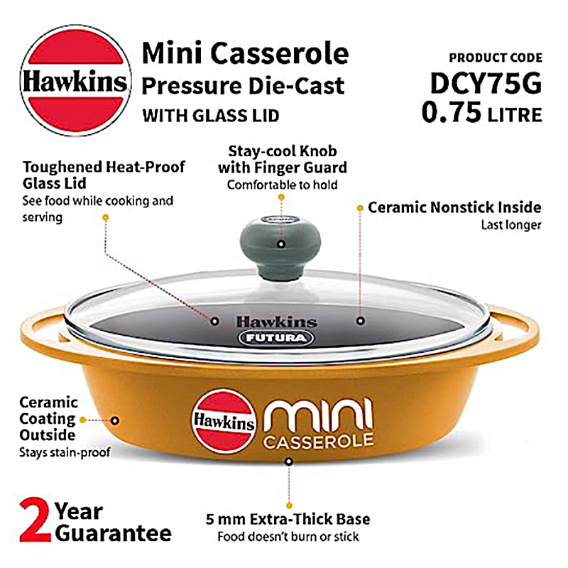 Die casting is a metal casting process, whereby metal is heated to a very high temperature and poured under high pressure into a mould cavity. The molten metal takes the shape of the mould and the result is a complex, intricately designed pot or pan which adds the metal where it is needed the most, building strength and functionality. Once the molten metal hardens, the mould is opened and the die cast pan is removed. It is then finished by a PFOA free long lasting nonstick coating on the inside and ceramic coating on the outside. The final result is a finely engineered piece of cookware with wonderful properties for cooking. It can be used for cooking, reheating food, serving and storing. Use only wooden, heat resistant nylon or silicone spatula (do not use metal). Suitable for use on gas, electric, ceramic and halogen.