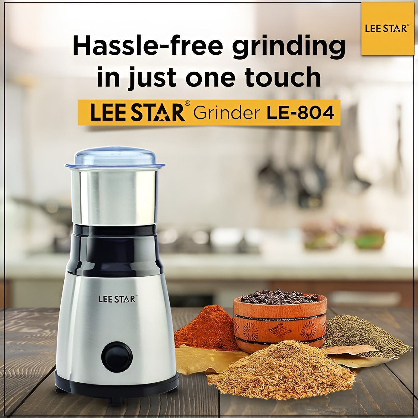 Discover the joy of hassle-free grinding in just one touch with the all new stainless steel Lee Star Grinder. It will make the task of grinding easy like never before. Now, you can grind nuts, whole spices, herbs and spices in just a flash. Enjoy fresh chutneys of all types at your ease. Its skilful blades and high performance motor will give you perfect and precise results, more than your satisfaction. It is perfect for both wet and dry grinding! Proudly made in India product.