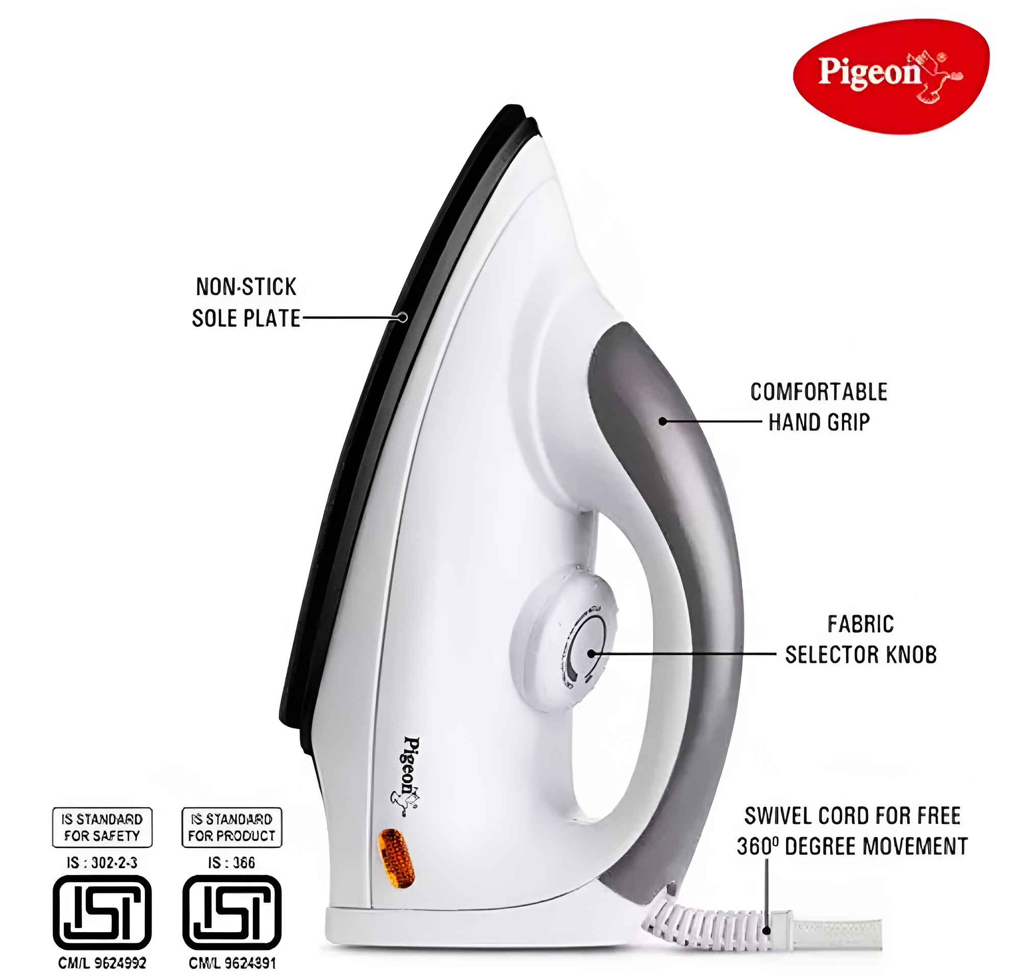 | Description | Swivel cord for easy movement Fabric Selector knob Comfortable hard grip Nonstick sole-plate | ||