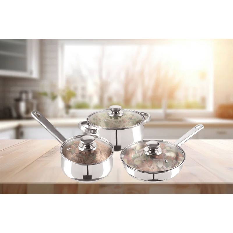 | Description | Strong and sturdy construction High quality stainless steel Wide opening for sale pouring and filling Easy to clean and maintain Rust proof & hygienic 100% Leak proof cap Completely odor-free, feel fresh Double wall PU insulated Food grade | Stainless steel coil Sandwich bottom (flat bottom) Gas, induction, hot plat, etc 22 cm belly handi, 22 cm fry pan, 16 cm sauce pan 2 pcs glass lid. | ||||||||||||||