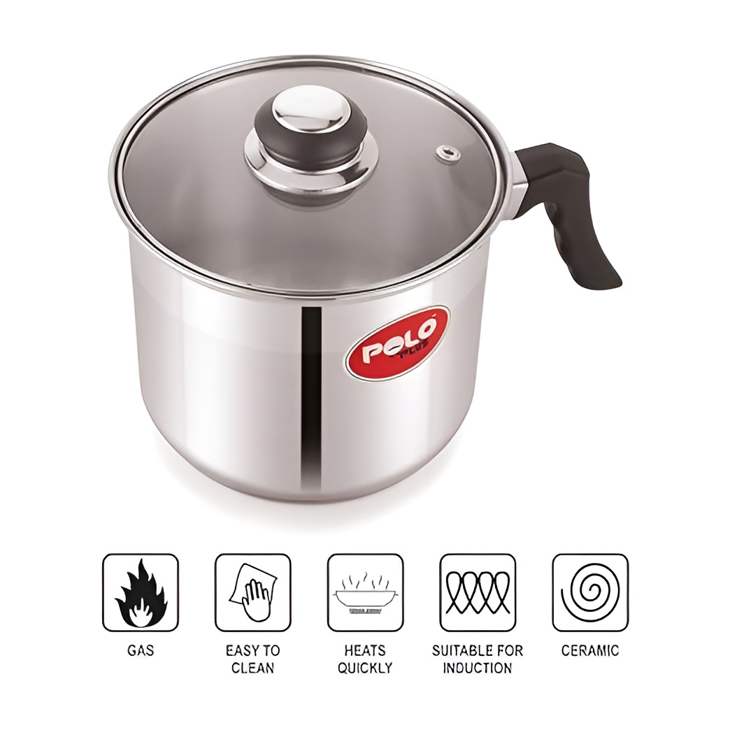 Milk Pot Material is Heavy Gauge Stainless steel Because of Which it’s a long lasting Product for your Kitchen and 100% Food Grade Steel, His Lid Material is Glass.