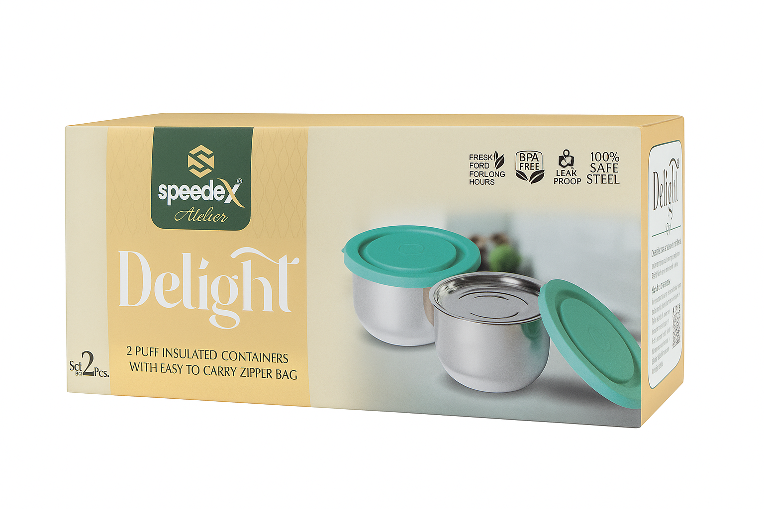 Upgrade your everyday meals with the Speedex Delight Lunch Box, designed for freshness, durability, and style. This premium set includes 2 double wall stainless steel containers that keep food hot and fresh for hours. Perfect for office, school, or travel, it comes with a stylish and easy-to-carry zipper bag for convenience.